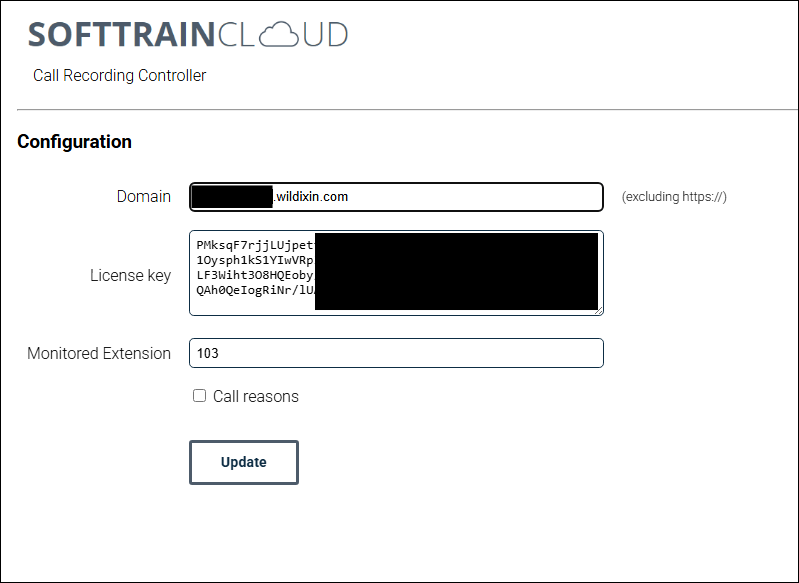 ![]() | PBX domain name and/or license key invalid Check the domain name and license key provided by SoftTrain Cloud in the Configuration options |